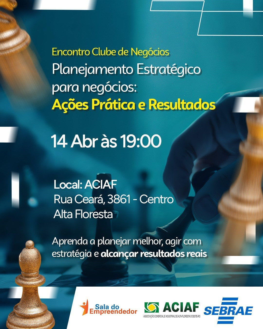 Com o objetivo de fortalecer o ecossistema empreendedor local, o Sebrae realiza, no próximo dia 14 de abril, o 1º Encontro do Clube de Negócios de Alta Floresta. O evento será sediado na Associação Comercial e Industrial de Alta Floresta (ACIAF) e busca reunir empresários e colaboradores interessados em aprimorar a gestão de seus empreendimentos.
